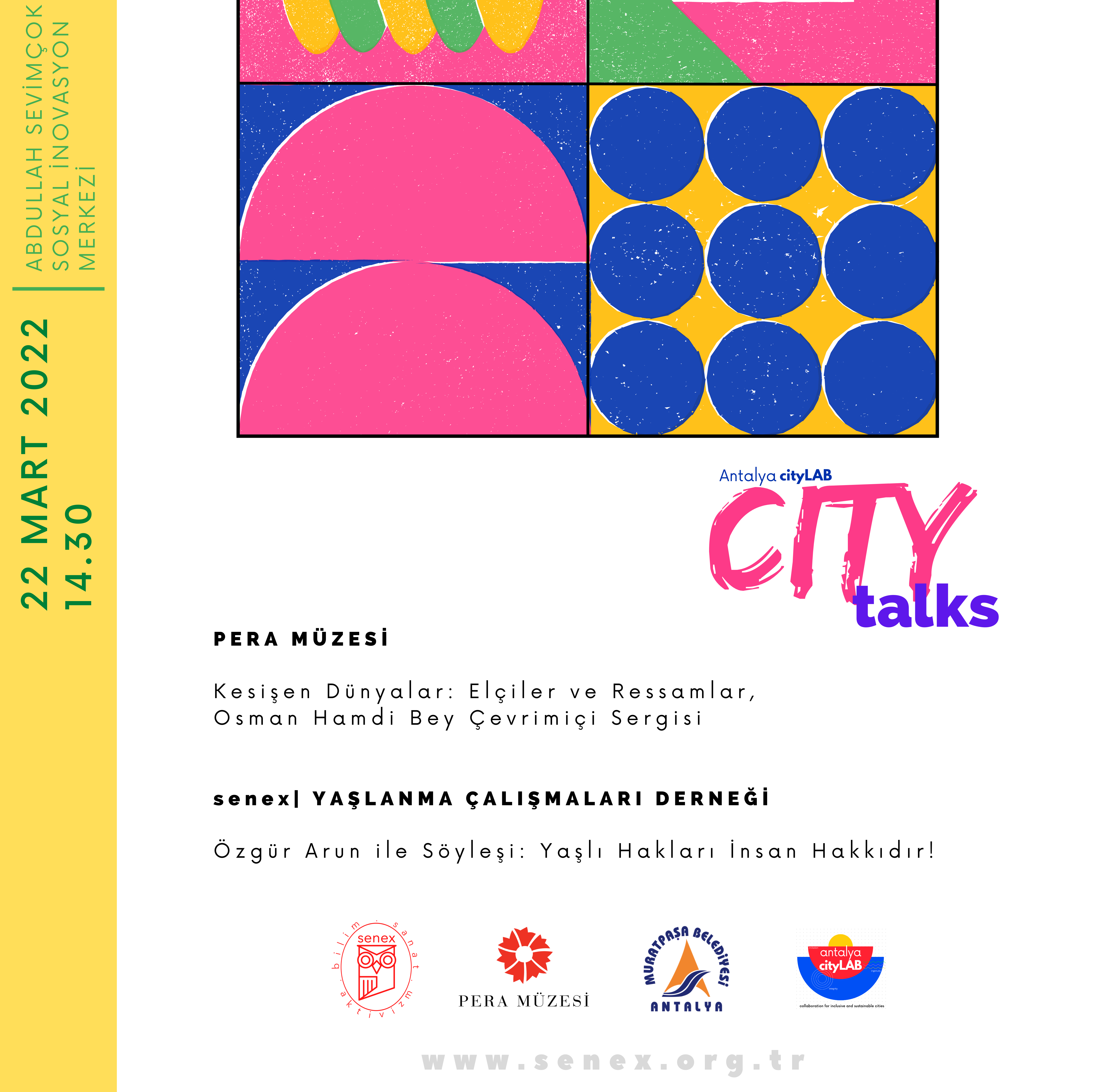 Antalya CityLAB koordinasyonunda, Senex: Yaşlanma Çalışmaları Derneği, Pera Müzesi & Muratpaşa Belediyesi iş birliğiyle bilim ve sanatı buluşturduk. Kent Söyleşileri’nin 22 Mart 2022 / 14.30