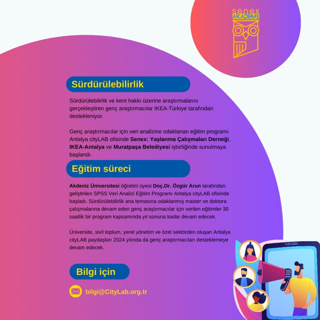 Genç araştırmacılar için veri analizine odaklanan eğitim programı Antalya cityLAB ofisinde Senex: Yaşlanma Çalışmaları Derneği, IKEA-Antalya ve Muratpaşa Belediyesi işbirliğinde sunulmaya başlandı.