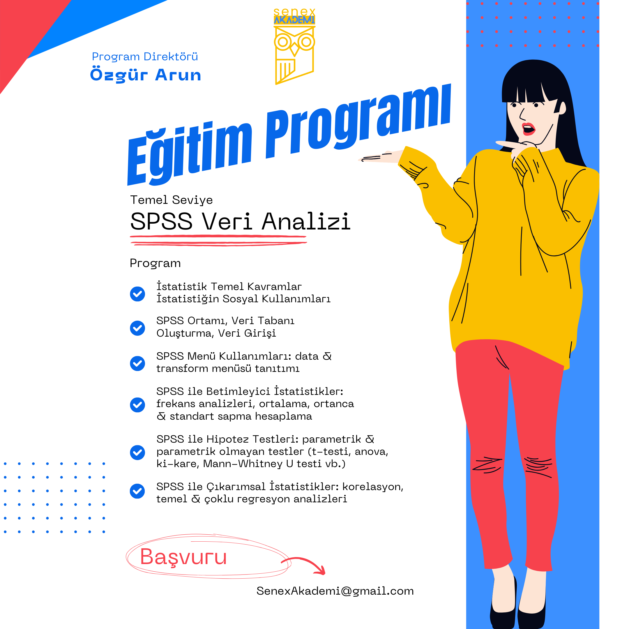 Senex Akademi lisans, yüksek lisans ve doktora düzeyindeki araştırmacılar ile kamu ve özel sektör profesyonellerine yönelik veri analizi ve SPSS programı ile istatistiksel analizler konusunda eğitim programları geliştirdi. Eğitim programı genç araştırmacılar ile kamu ve özel sektörde kariyer yapan profesyonellerin talepleri ve ihtiyaçları doğrultusunda hazırlandı.